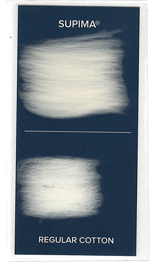SUPIMA® cotton is naturally softer and more luxurious thanks to its finer, stronger, and longer fibers. The extra-long staple measures approximately 1.5 inches compared to about 1 inch for regular cotton, allowing for lower twist yarns and superior overall performance.
